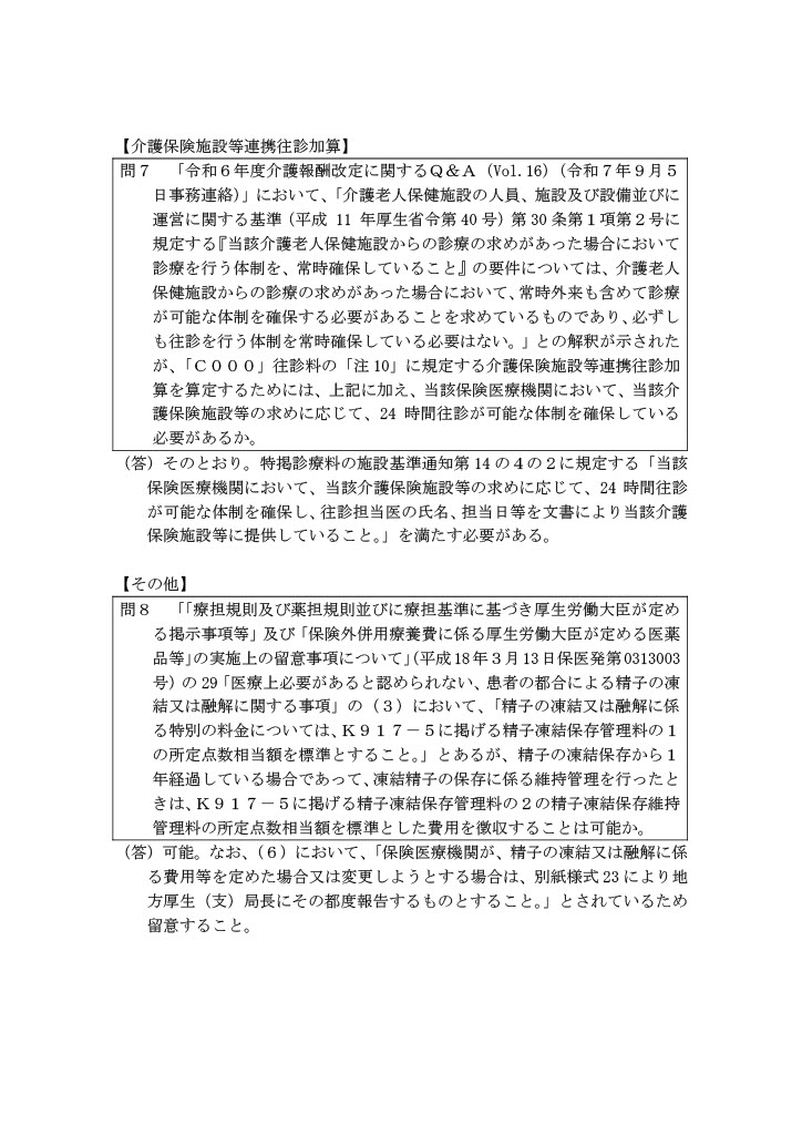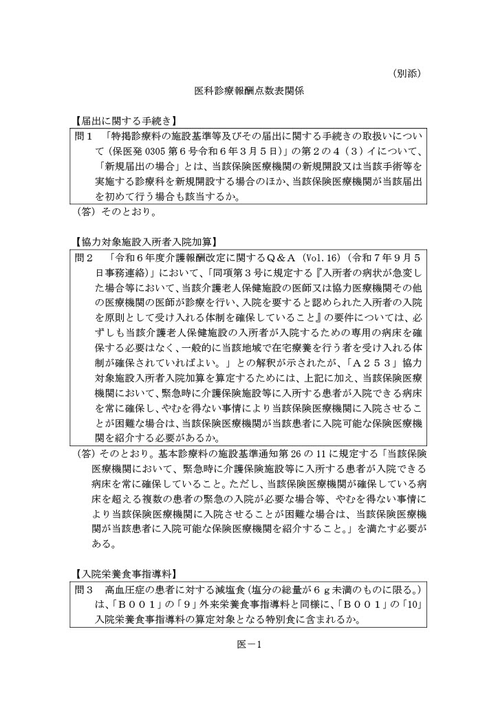 2025年9月24日 2025年9月24日 室蘭市 医師会 News室蘭市医師会会員限定(News) 疑義解釈資料の送付について(その29) 【届出に関する手続き】【協力対象施設入所者入院加算】【入院栄養食事指導料】【一般不妊治療管理料】【プログラム医療機器等指導管理料】【介護保険施設等連携往診加算】