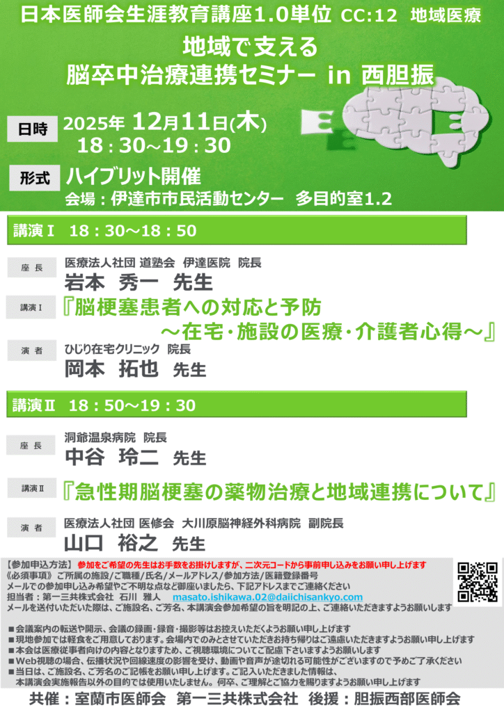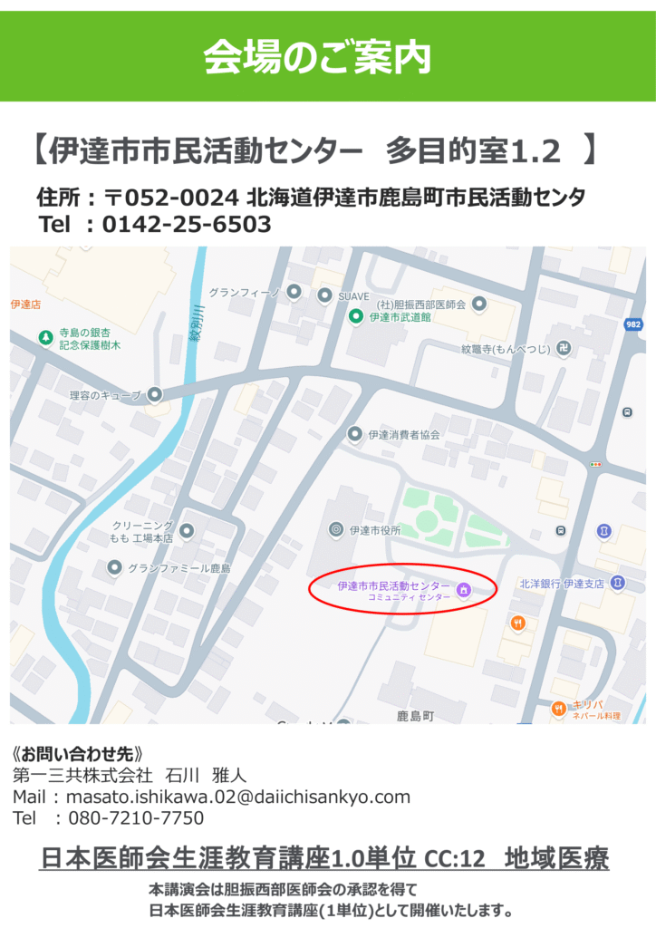 【日本医師会生涯教育講座:西胆振がん疼痛診療学術講演会】令和7年11月13日(木)18:30〜19:30